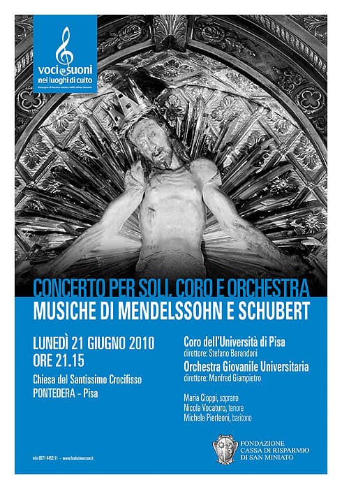 “Voci e suoni nei luoghi di culto” è la Rassegna di musica sacra della Fondazione, al cui interno sono stati realizzati eventi che hanno riscosso notevole successo di pubblico. La rassegna si svolge nei luoghi di culto del territorio di riferimento della Fondazione, portando all’attenzione di tutti beni culturali che sono stati oggetto di importanti progetti di restauro della stessa Fondazione e facendo conoscere giovani artisti del territorio.