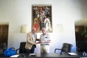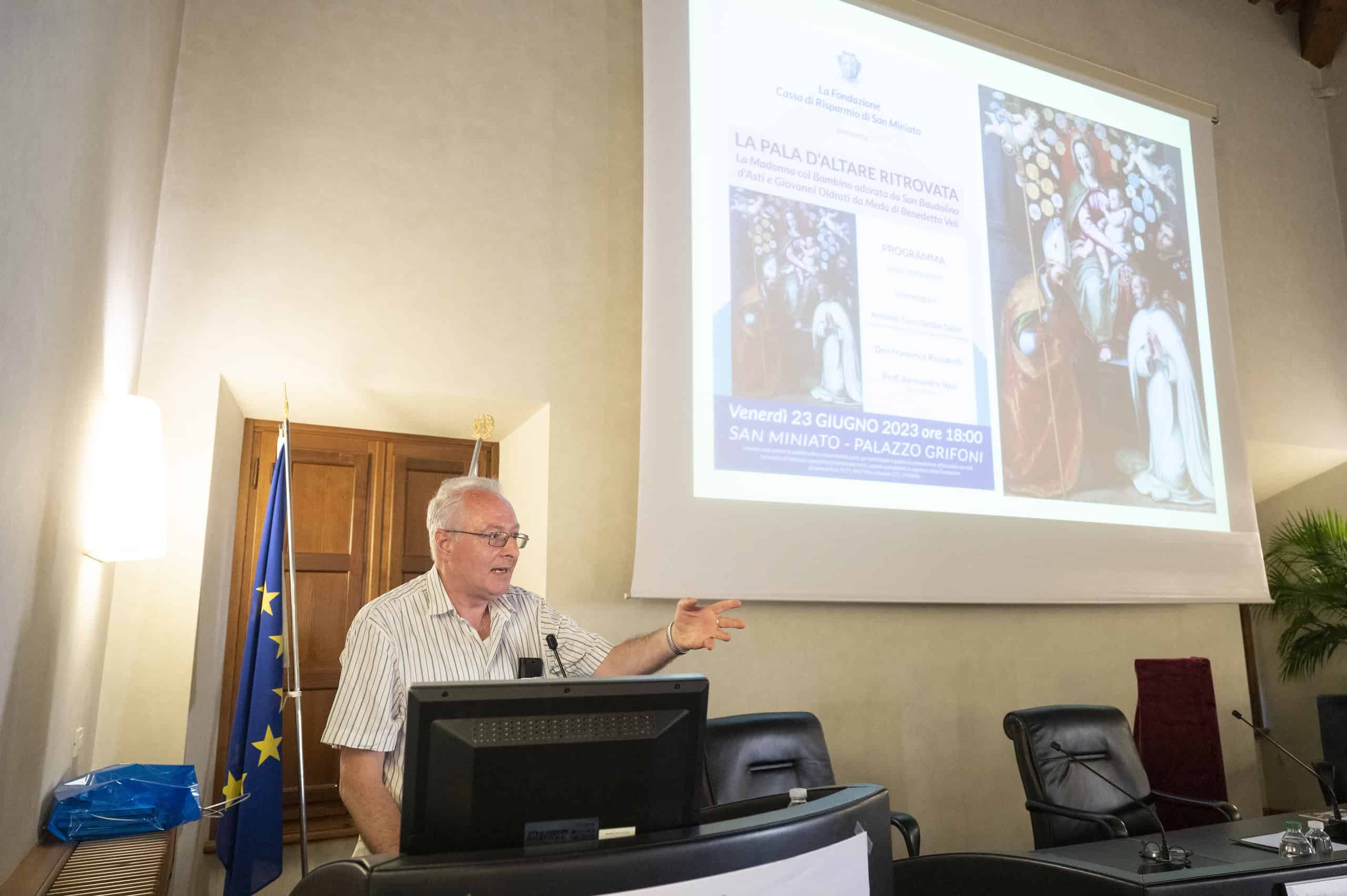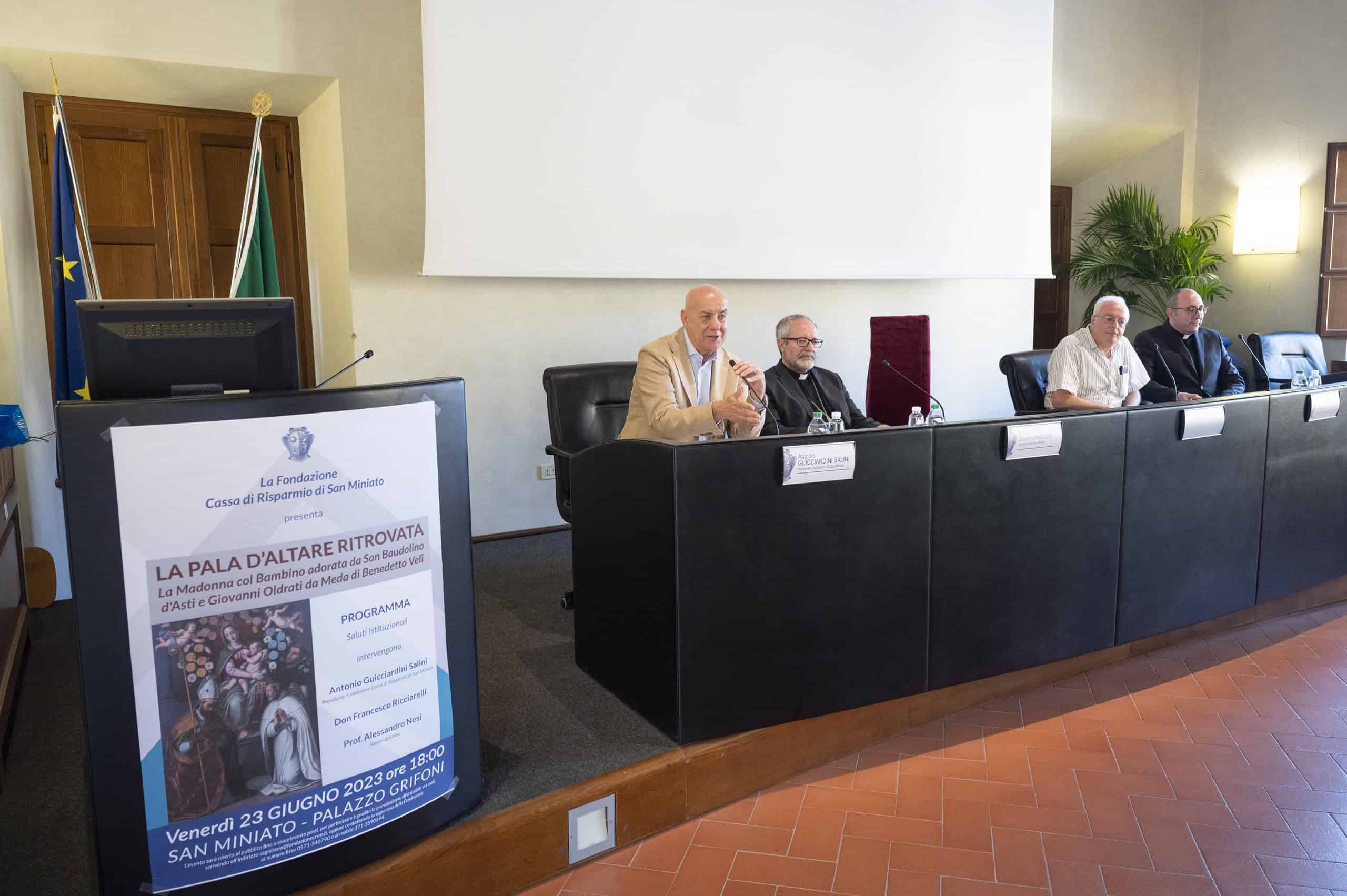 Lo scorso venerdì 23 giugno 2023, la nostra Fondazione ha avuto il pregio di presentare al pubblico un’importante opera d’arte: una Pala d’Altare raffigurante La Madonna col Bambino adorata da San Baudolino d’Asti e Giovanni Oldrati da Meda di Benedetto Veli. Di seguito alcune foto dell’evento.