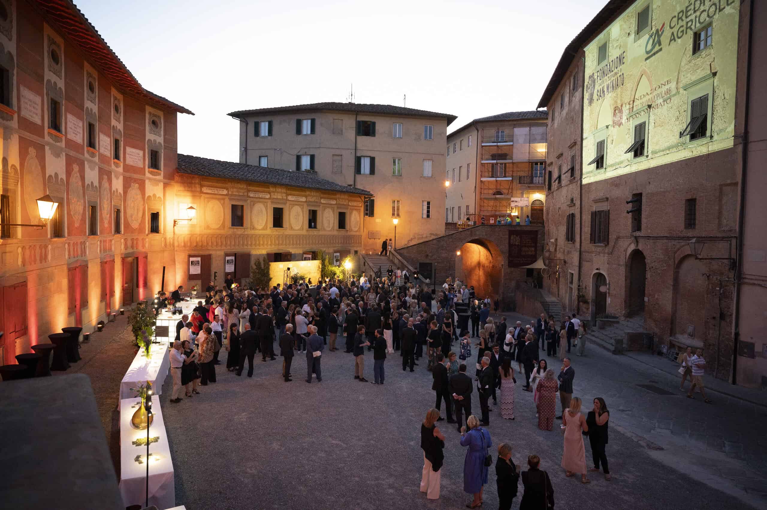 .La “prima” è proseguita con il consueto ricevimento in piazza del Seminario, con gli ospiti accolti da Antonio Guicciardini Salini, Presidente della Fondazione CRSM e Massimo Cerbai, Responsabile Direzione Regionale Toscana-Umbria Crédit Agricole Italia che, dando il benvenuto al pubblico, hanno ribadito l’importanza dell’esperienza del Dramma Popolare e la forte collaborazione di queste due realtà per San Miniato. Un pensiero sostenuto anche da Marzio Gabbanini, Presidente del Dramma Popolare, che ha ringraziato i due enti per il sostegno determinante alla vita del teatro dello spirito. Sono intervenuti poi il Vescovo Giovanni Paccosi, il Presidente della Regione Eugenio Giani, presente tra le molte autorità intervenute alla serata principale della Festa del Teatro del San Miniato, il Sindaco Simone Giglioli e la Professoressa Patrizia Giunti, Presidente della Fondazione Giorgio La Pira..