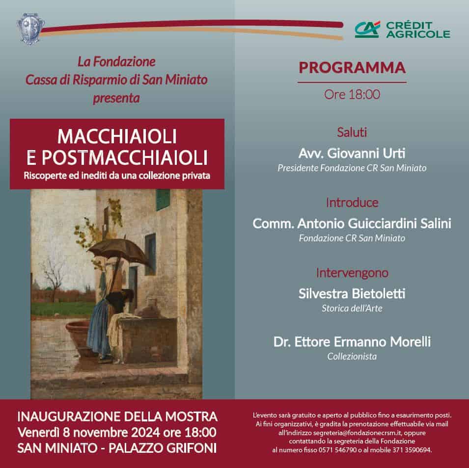 La presentazione sarà aperta dai saluti del Presidente della Fondazione Cassa di Risparmio di San Miniato, Avv. Giovanni Urti. Seguiranno l’introduzione del Comm. Antonio Guicciardini Salini e gli interventi della Storica dell’Arte Silvestra Bietoletti e del collezionista Dr. Ettore Ermanno Morelli.