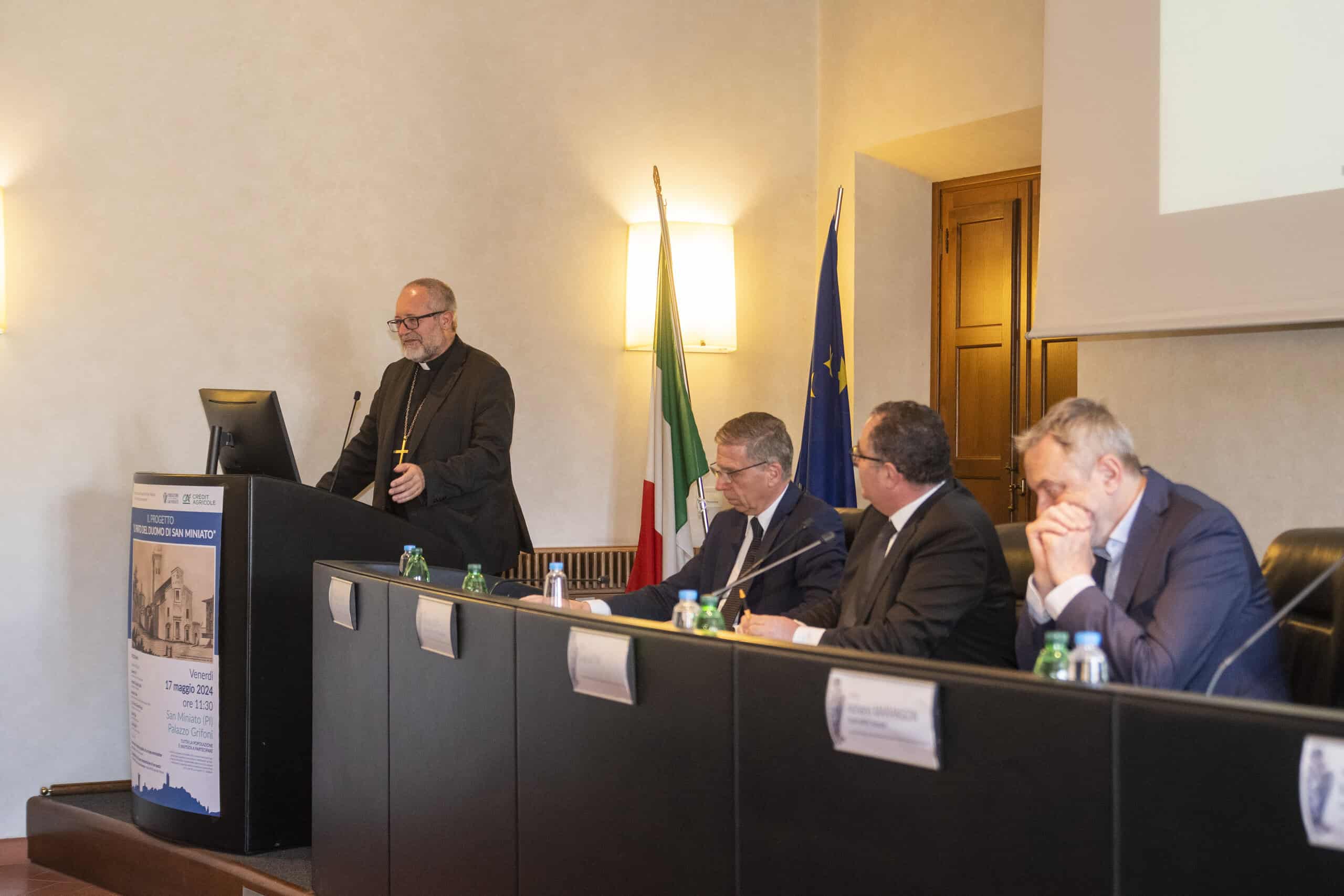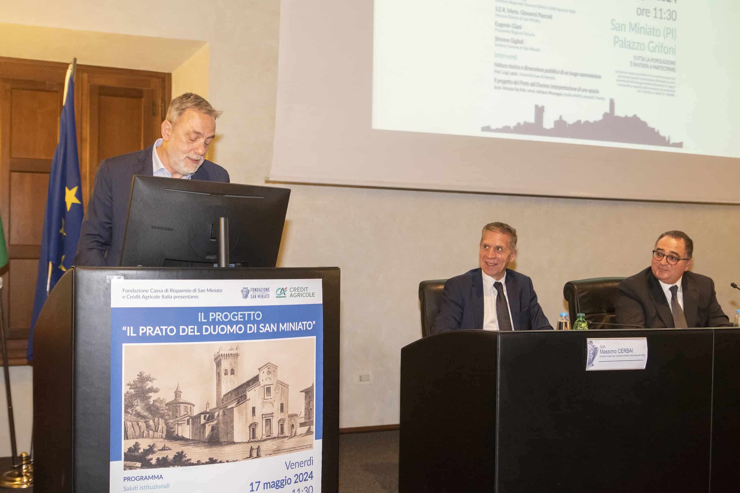 Lo scorso venerdì 17 maggio 2024, presso Palazzo Grifoni è stato presentato il progetto “Il Prato del Duomo di San Miniato“. Un progetto commissionato congiuntamente dalla Fondazione Cassa di Risparmio di San Minato e Crédit Agricole Italia per la riqualificazione e l’abbellimento della storica Piazza, uno dei luoghi più antichi e suggestivi della città di San Miniato. Di seguito alcune foto dell’evento.