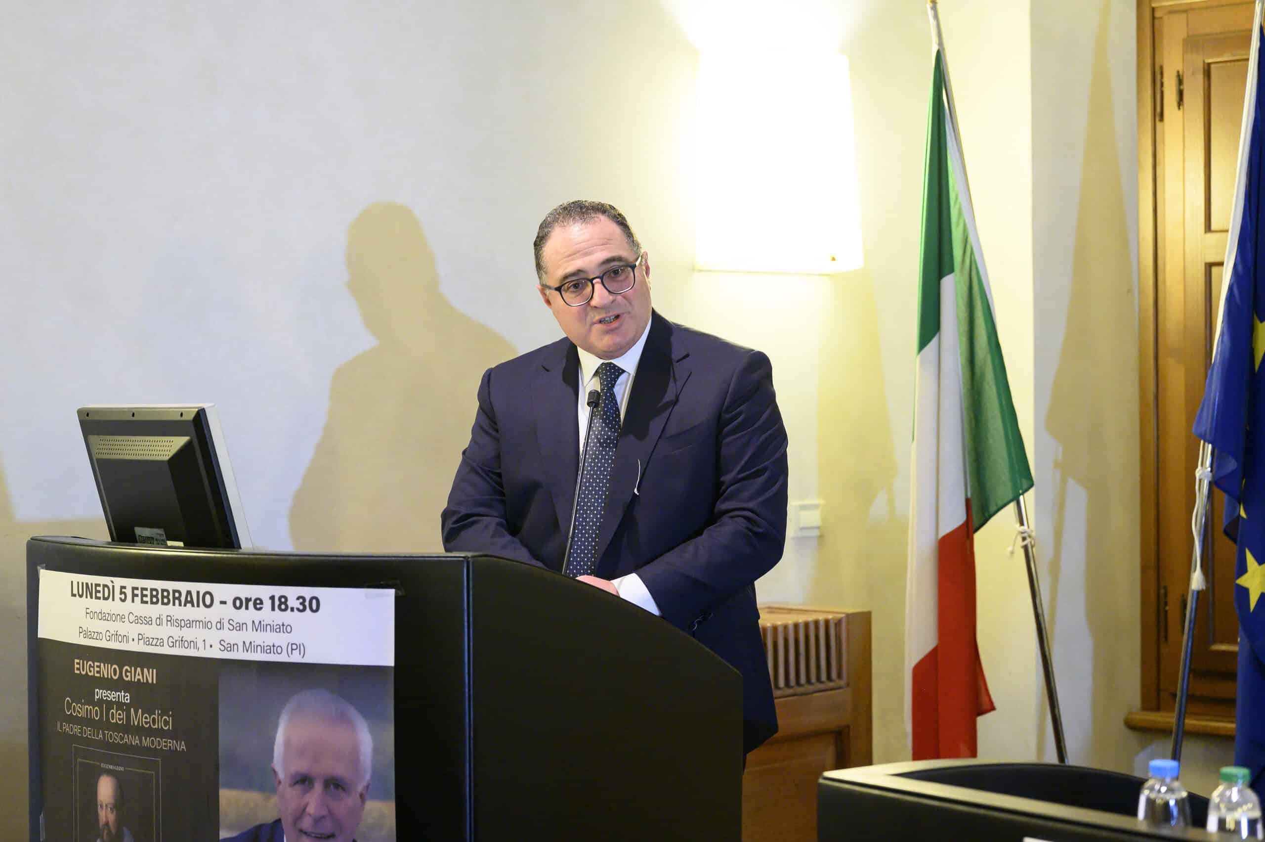 Lunedì 5 febbraio 2024, la Fondazione CR San Miniato ha avuto l’onore di avere come ospite a Palazzo Grifoni il Presidente della Regione Toscana, Eugenio Giani, in occasione della presentazione del suo nuovo volume “Cosimo I dei Medici – Il padre della Toscana moderna”. Di seguito pubblichiamo alcune foto dell’evento.