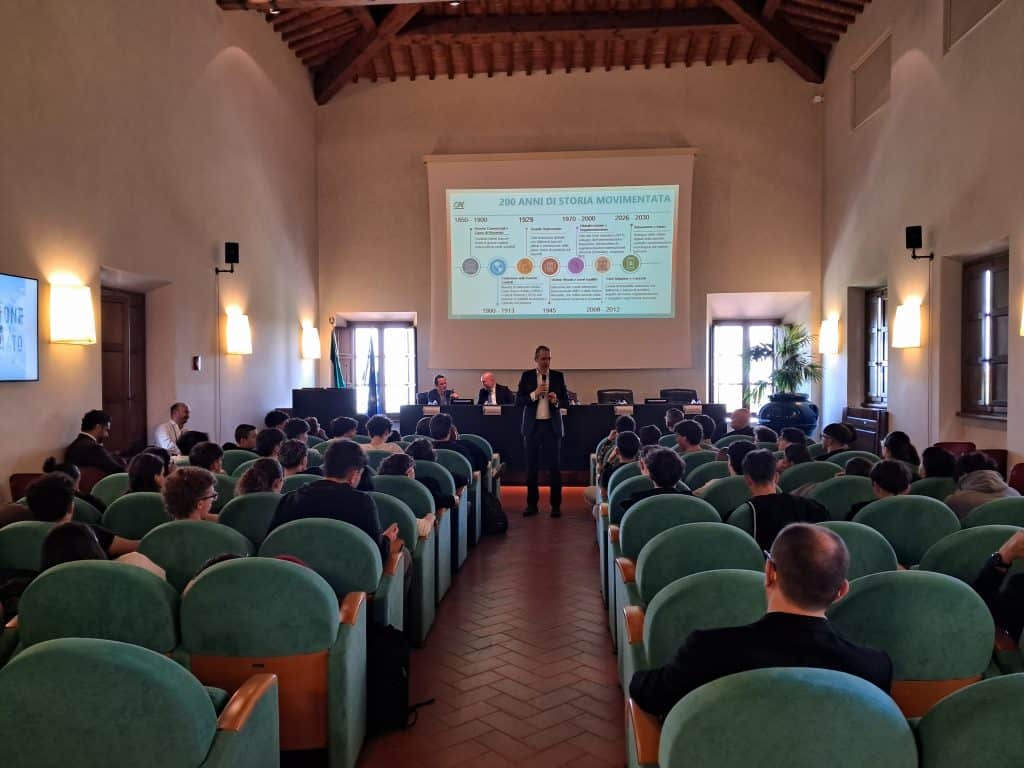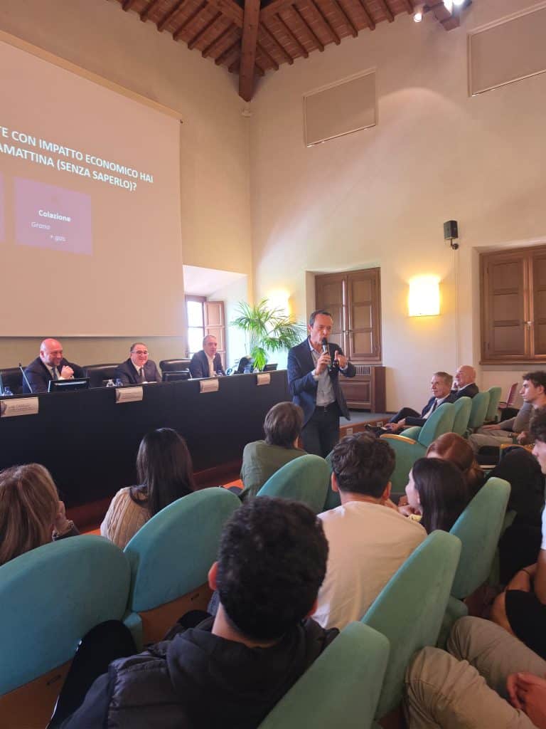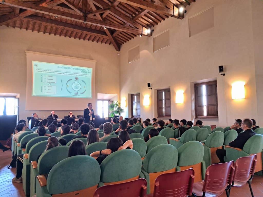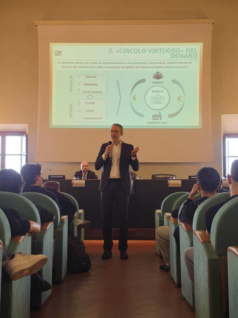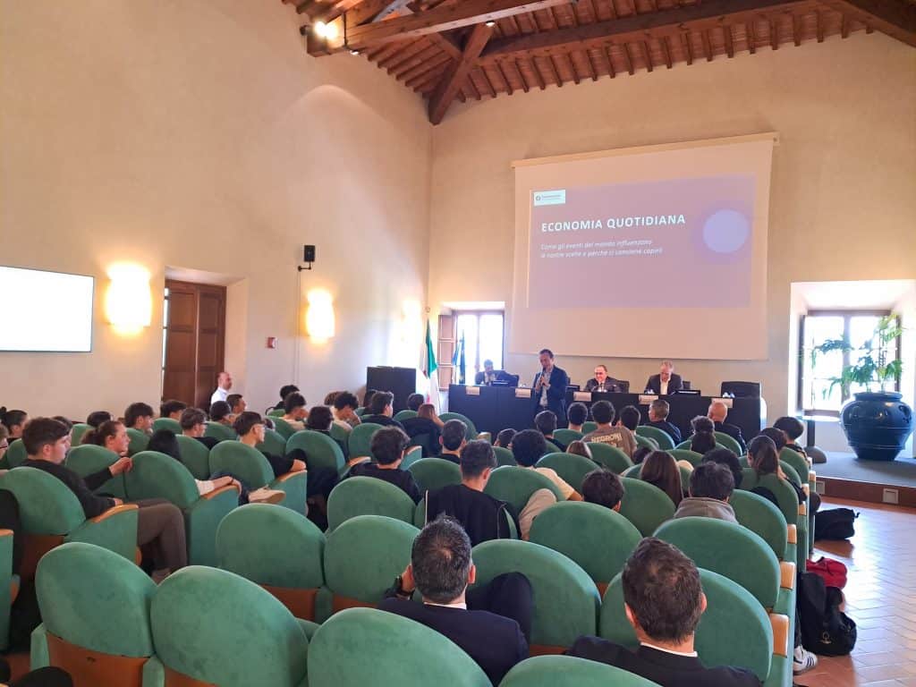 Lo scorso martedì 21 aprile 2026, nell’ambito del progetto “Il Quotidiano in classe”, promosso dall’Osservatorio for independent thinking e sostenuto dalla Fondazione Cassa di Risparmio di San Miniato, circa 80 studenti hanno partecipato a una coinvolgente lezione interattiva sugli effetti degli eventi globali sull’economia quotidiana tenuta dal giornalista di Sky Tg24 Luigi Casillo. Alla giornata di studio ha presto parte anche il vice direttore generale di Crédit Agricole Italia, Vittorio Ratto.