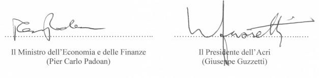 il Ministero dell’Economia e delle Finanze, nella persona del Ministro Pier Carlo Padoan, prende atto degli impegni assunti dalle suddette Fondazioni e, nell’esercizio dei poteri di vigilanza ad esso attribuiti dalla legge, verificherà il rispetto delle disposizioni statutarie che saranno introdotte.
